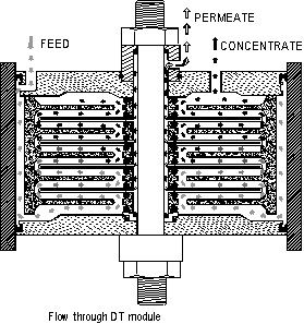 DTRO膜組件內部任何單個部件均允許單獨更換。過濾部分由多個過濾膜片及導流盤裝配而成,當過過濾膜片需更換時可進行單個更換,對于過濾性能好的膜片仍可繼續使用,這最大程序減少了換膜成本,這是卷式、中空纖維等其它形式膜組件所無法達到的,比如當卷式膜出現補丁、局部泄漏等質量問題需要更換新膜時只能整個膜組件更換。