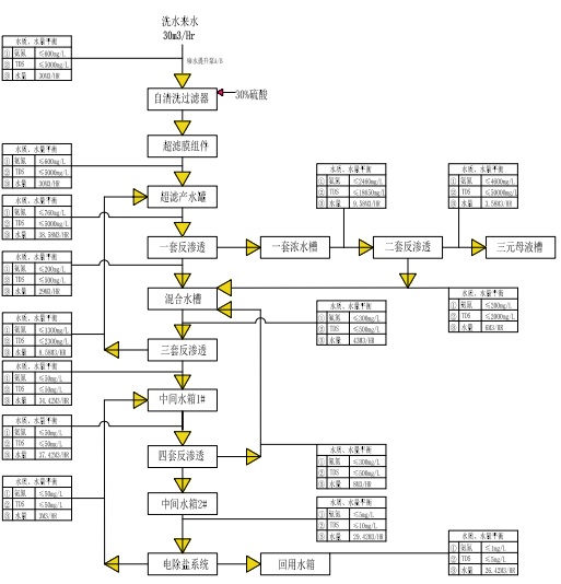 洗水來水為30m3/h,洗水來水TDS約為5000mg/l,pH值為10。